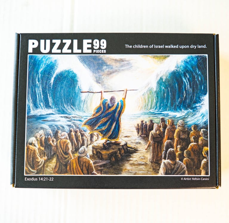 Exodus 14: 21-23 shows the powerful moment when God used Moses to part the waters and lead the Israelites through dry land. This puzzle, with its inspiring visual design, offers children hands-on activity, encouraging them to see themselves as the Moses of today, called to walk in the supernatural and make difference in the lives of others.